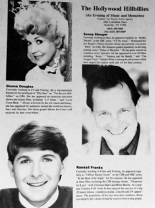• Road Show for Fairs and Festivals: Featuring Randall Franks alongside Donna Douglas (“Elly Mae” from The Beverly Hillbillies) and Sonny Shroyer (“Enos” from The Dukes of Hazzard), this package delivered nostalgic, crowd-pleasing entertainment perfect for live events and was booked by the Joe Taylor Agency in Nashville. Shroyer would later record “Children in Need” with Franks and David Davis and other members of the Jamboree for the 2000 album God’s Children.”