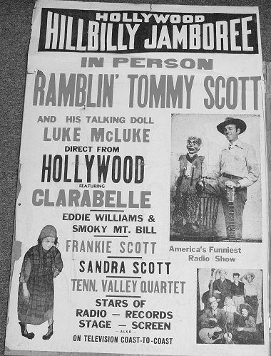 Throughout his career, Scott managed multiple productions simultaneously, featuring various stars and even incorporating circus elements. From the 1940s onward, he made it a hallmark to include Hollywood celebrities, always tying them back to the Hollywood Hillbilly Jamboree. Historical lineups boasted legends like Uncle Dave Macon, Stringbean Akeman, Carolina Cotton, Johnny Mack Brown, Ray Whitley, Sunset Carson, Fuzzy St. John, and Tim McCoy.